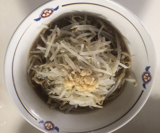 キャベツやチャーシューや半熟卵も用意してお店にも引けを取らない一杯が完成!といきたかったところですが、もやしと刻みニンニクだけでもボリューム満点で満腹必至で最高でした。